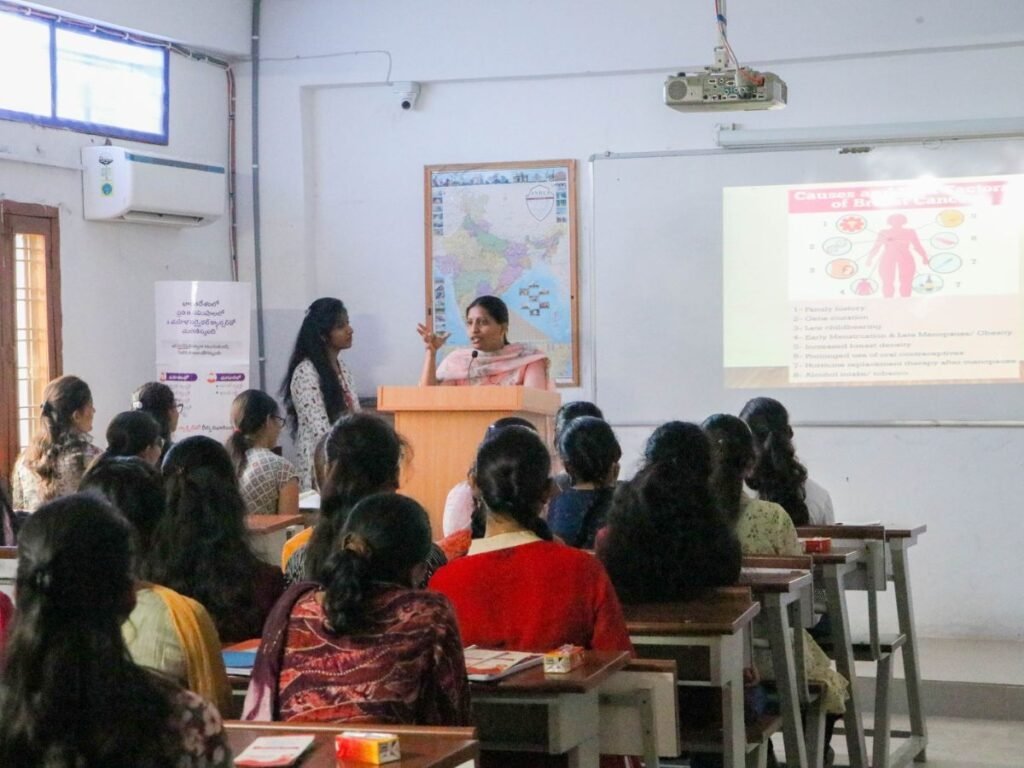 Dr. Divya, a respected Surgeon, focused on breast cancer, discussing steps for detection, causes, risk factors, symptoms, and the criticality of early diagnosis. She expanded on preventive measures and underscored the importance of early detection tests. Similar to Dr. Pranathi, Dr. Divya emphasized menstrual hygiene and the adoption of a healthy lifestyle.