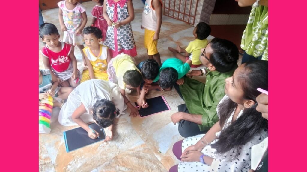 Beyond the distribution of supplies, the volunteers took time to engage with the children, playing games and offering educational support. Activities focused on maintaining personal hygiene, understanding good and bad touch, and creative expression through colouring, all of which stimulated the children’s creativity. This time spent with the children was about giving and sharing knowledge, creating memories, and imparting life skills.
